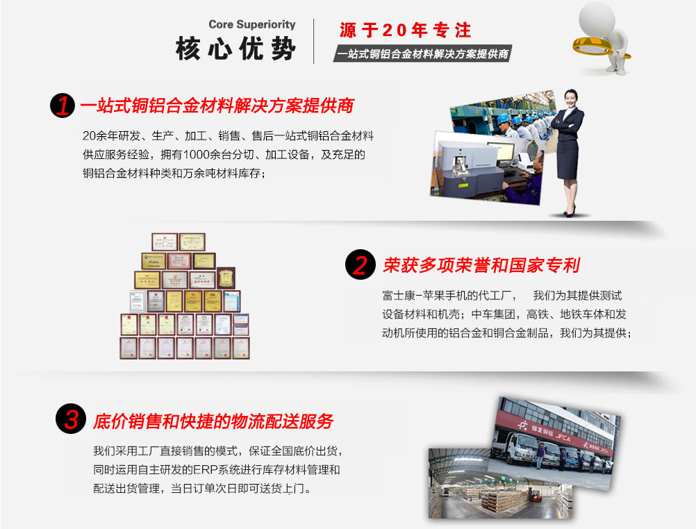 深圳市錦發(fā)銅鋁有限公司成立于1998年,注冊資金1億元人民幣,是一家國家高新技術(shù)企業(yè),榮獲廣東省著名商標(biāo)稱號。總部及生產(chǎn)基地位于深圳寶安松崗,占地面積3萬多平方。公司成立以來,一直專注于鋁材、銅材等合金材料的研發(fā)、生產(chǎn)加工及銷售。倉儲上萬噸銅鋁合金材料,迅速響應(yīng)客戶需求。